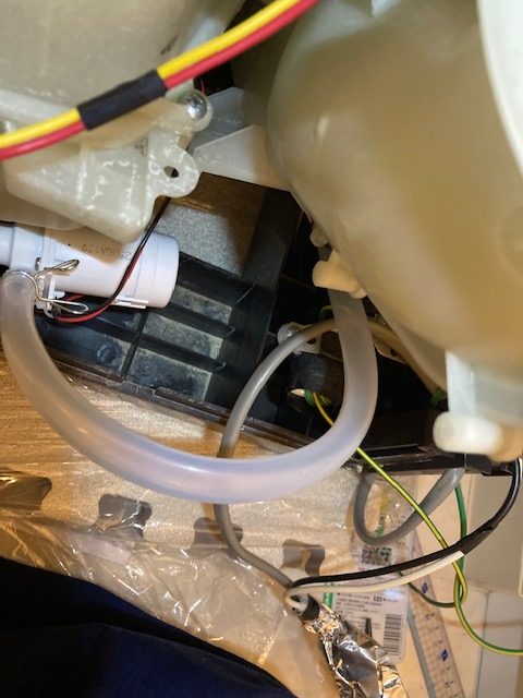 排水ホースも交換、ポンプも交換しました。10年以上経過してますので一式交換したほうがいいですね。
